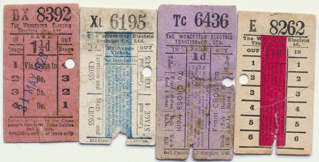 728 | 4 Worcester Electric Traction Company geographical and numerical punch type tickets. Values 1d, 1½d, 10d and exchange. | £60 |  |
