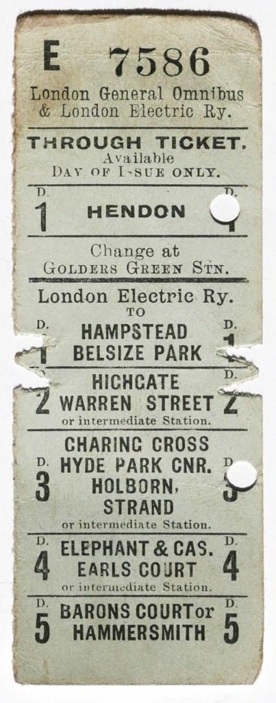 733 | LGOC and London Electric Railway geographical punch type ticket. | £22 |  |