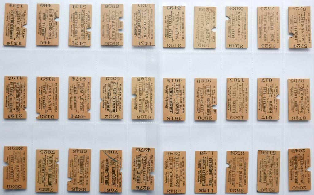 764 | Approx 90 Metropolitan Railway whole Edmondson tickets, some on coloured card. Most issued. Back damage to some. | £160 |  |