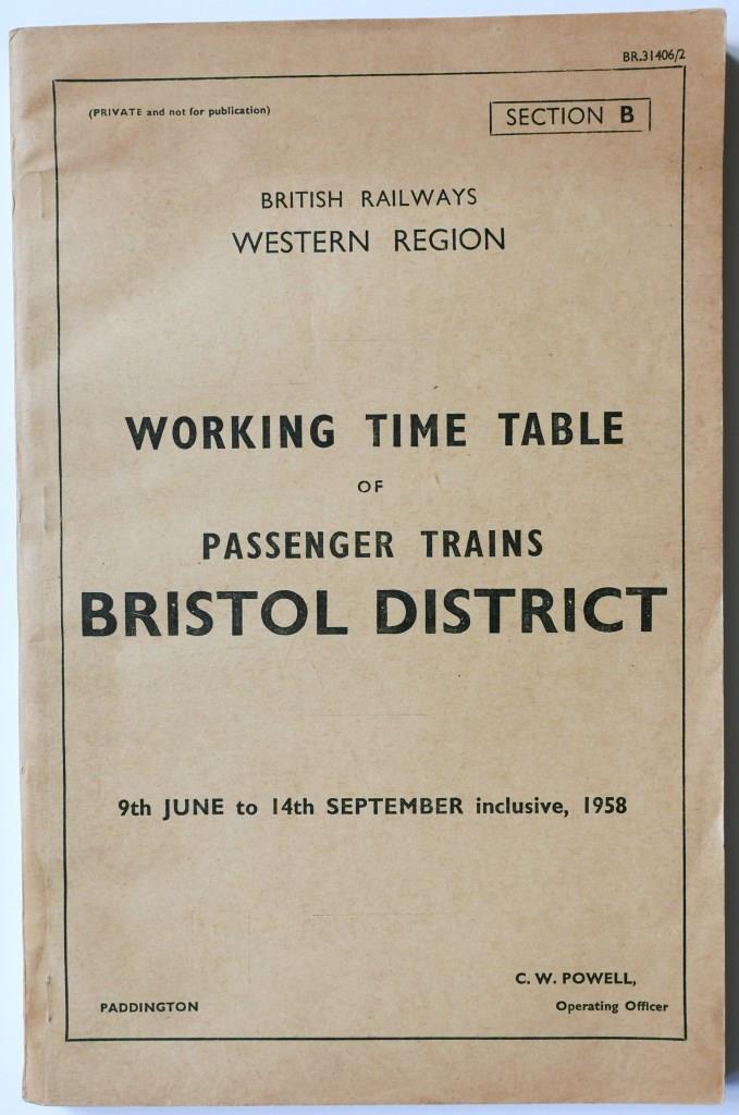 87 | BR(W) section B working timetable of passenger trains Bristol District. 260pp dated June 1958. | £2 |  |