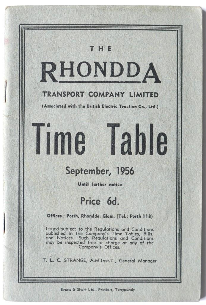 125 | Rhondda Transport Company timetable booklet dated September 1956. Grey coloured covers, 76pp with centre page map. | £55 |  |