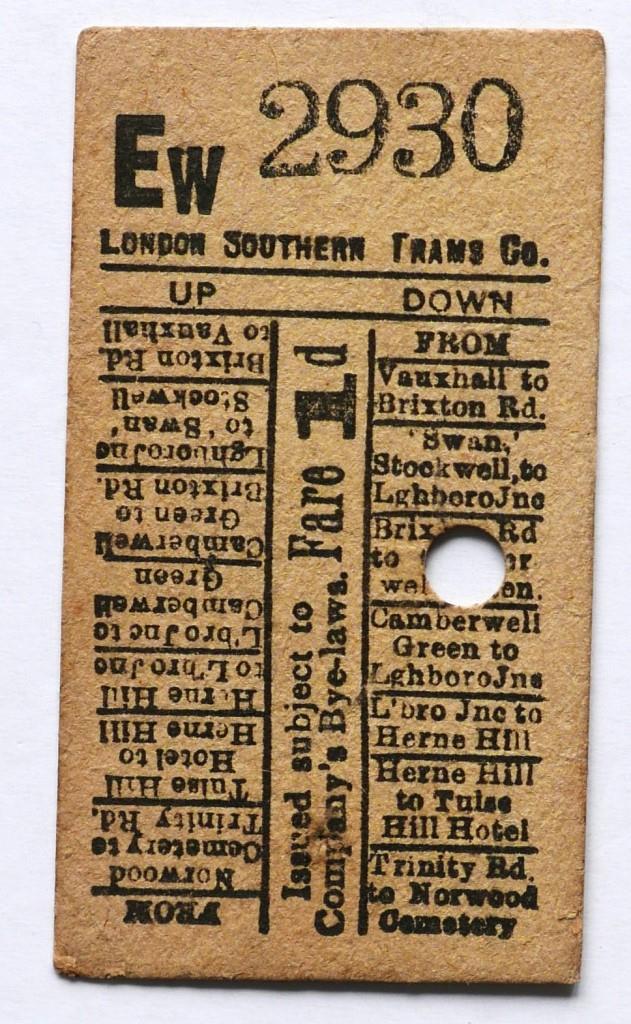 715 | London Southern Trams Co 1d geographical punch type ticket. | £65 |  |