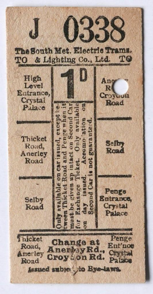 716 | South Met Electric Trams & Lighting Co 1d geographical punch type ticket. | £13 |  |